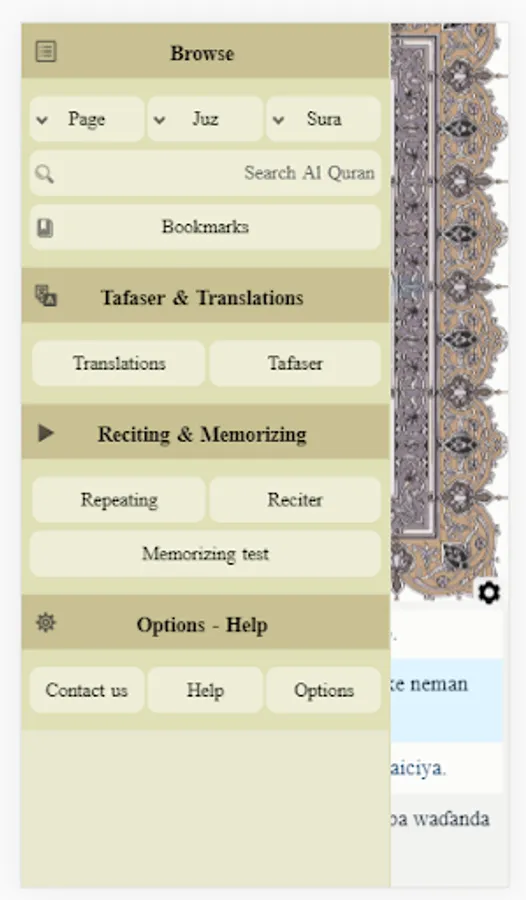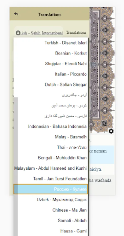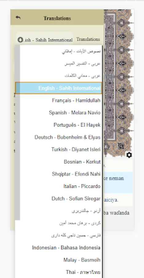 2. Text Translation of The Quran Verse by Verse meanings for more than 20 languages.