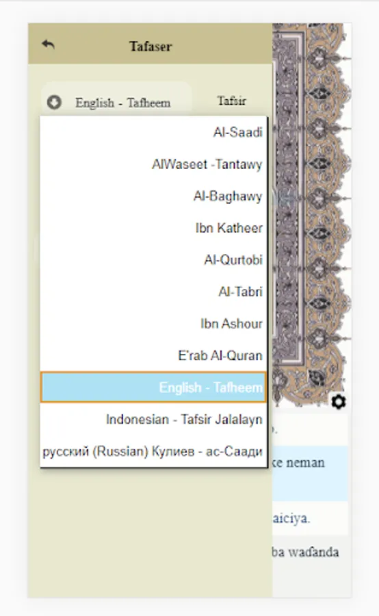 8. Six Arabic interpretation (Commentary) "Al-Saa'di, Ibn-Katheer, Al-Baghawy, Al-Qortoby, Al-Tabary and Al-Waseet".