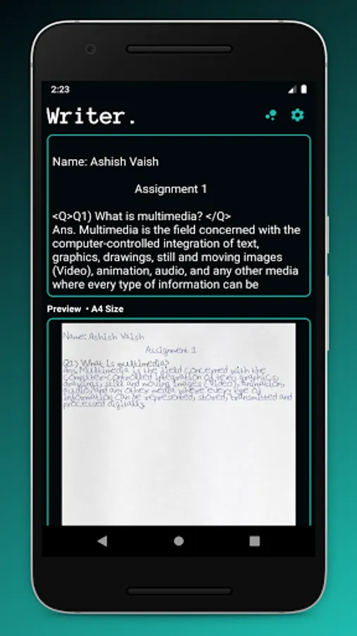 Writer. is a tool using which you can write assignments in your own handwriting.