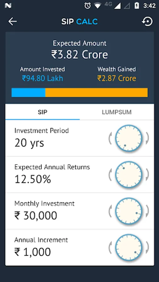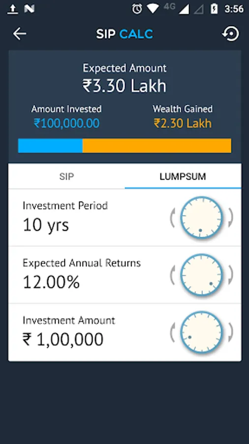 Easy to use SIP calculator app that helps you calculate the expected returns on your mutual funds for both Lumpsum and SIP (applicable for India).