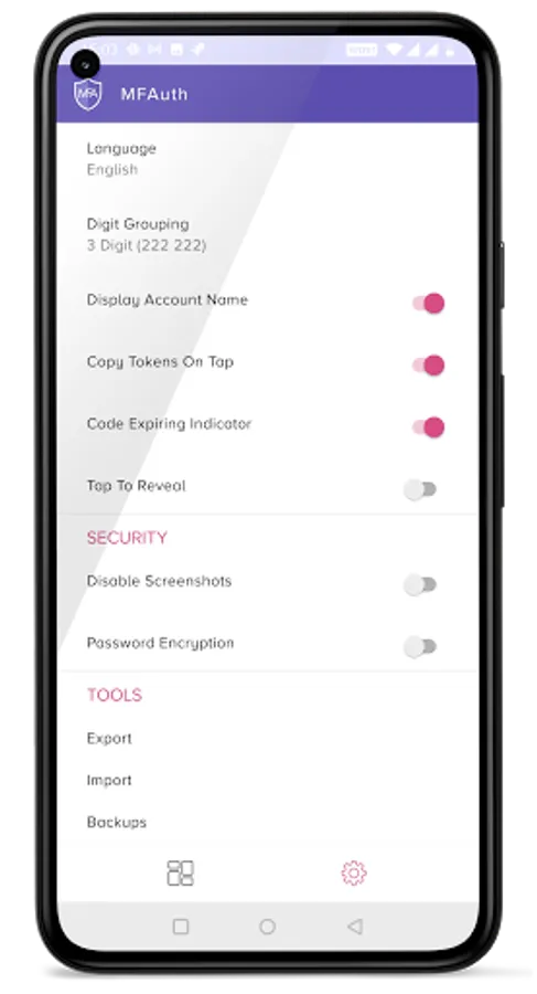 Protect your accounts by using biometrics (Fingerprint). This helps protect your codes from prying eyes or in case someone gets access to your phone. You can also block screen capture via screenshots and other methods.