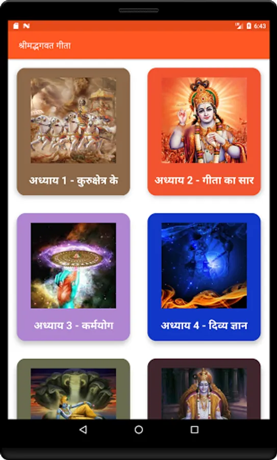 एक भ्रातृहत्या युद्ध का सामना करते हुए, एक निराश अर्जुन युद्ध के मैदान में परामर्श के लिए अपने सारथी कृष्ण की ओर मुड़ता है। कृष्ण, भगवद गीता के माध्यम से, अर्जुन को ज्ञान, भक्ति का मार्ग और निस्वार्थ कर्म का सिद्धांत प्रदान करते हैं। भगवद गीता उपनिषदों के सार और दार्शनिक परंपरा को कायम रखती है। हालांकि, उपनिषदों के कठोर अद्वैतवाद के विपरीत, भगवद गीता भी द्वैतवाद और आस्तिकता को एकीकृत करती है।