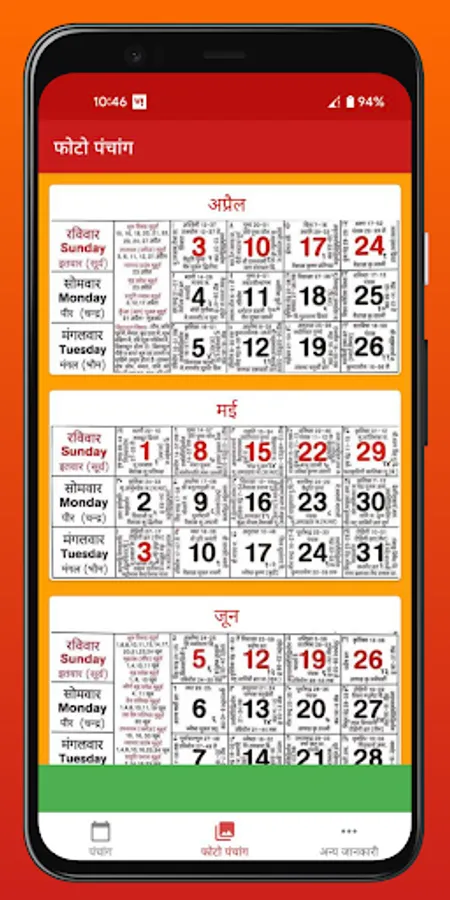 Widget Support: Access essential information right from your device's home screen with our convenient widgets. Stay updated on upcoming festivals, daily Panchang, and more with ease.
