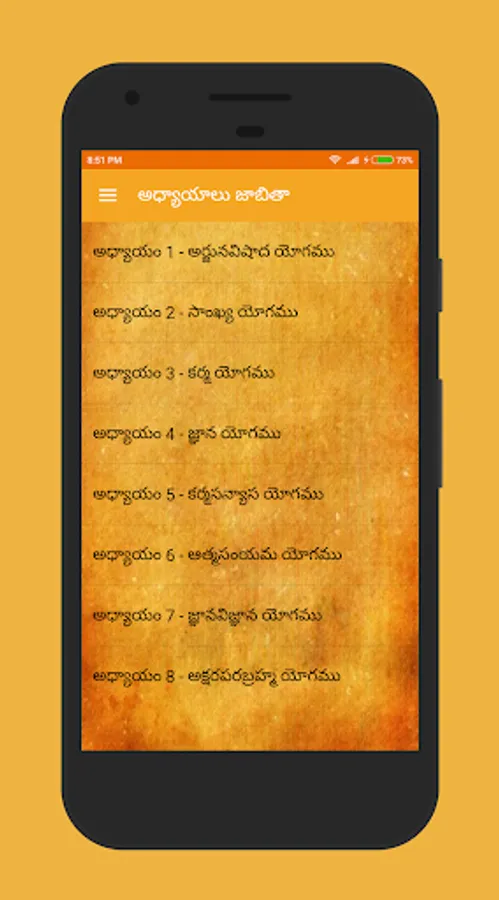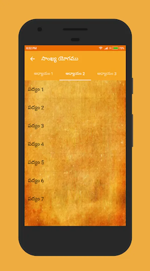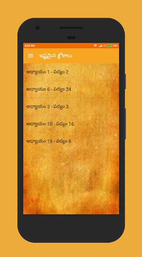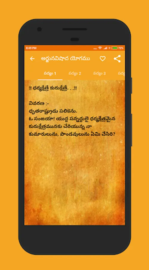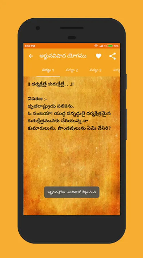 • Share feature to easily send your favorite Bhagavad Geetha shloka / verse to your friends