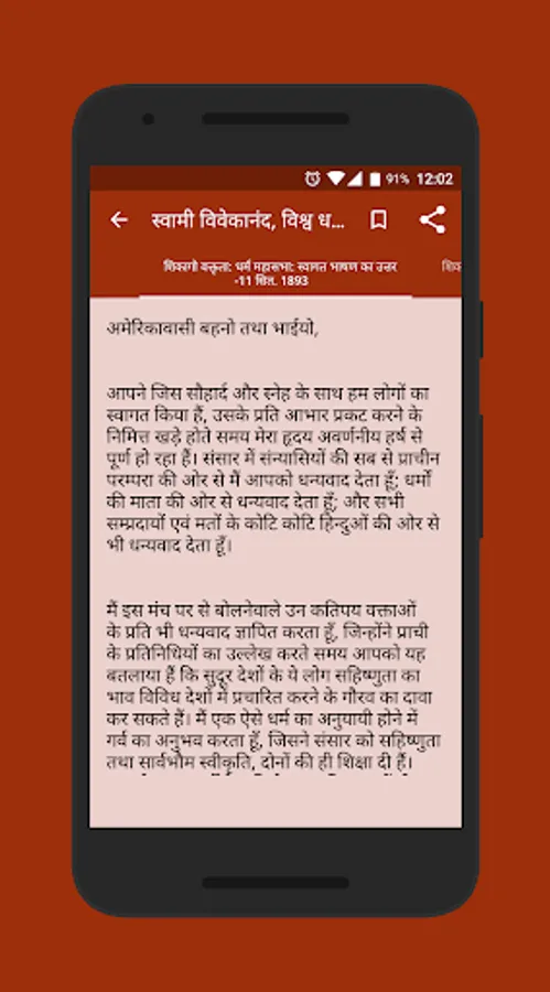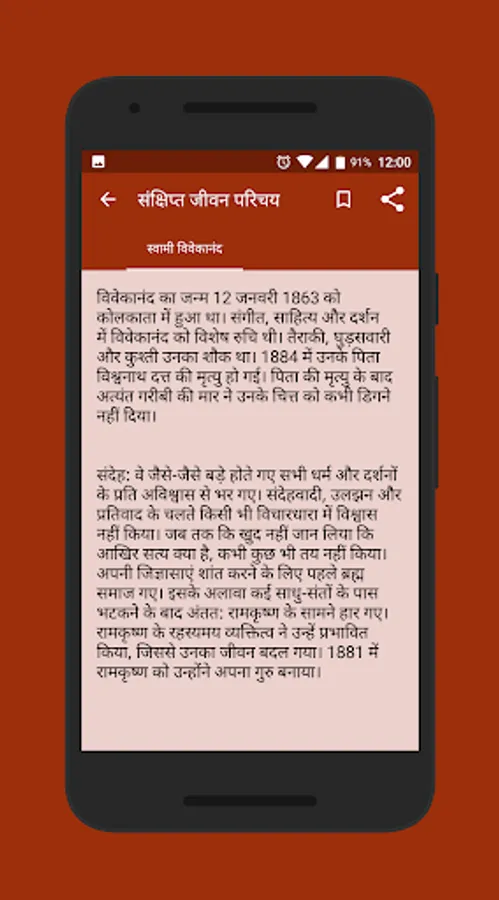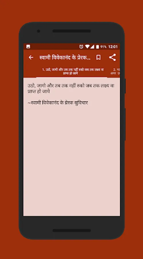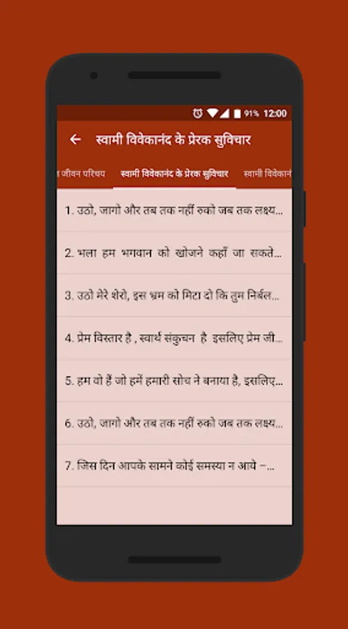 Swami Vivekananda Hindi Quotes is a collection of motivational and incredible quotes. This app is quite simple to use. Everyone can use and take advantage of Swami Vivekananda quotes. Motivate yourself by read quote of Swami Vivekananda. if you like quote you can share through social network like Whats app, Mail etc.