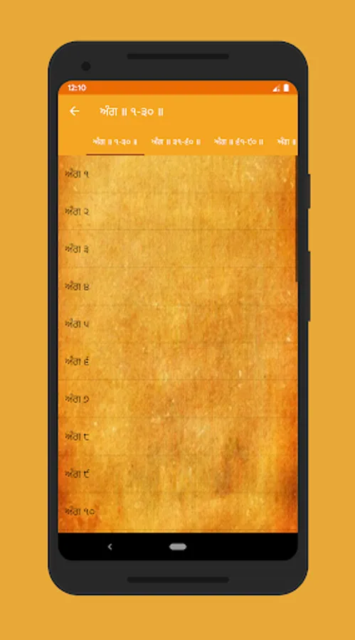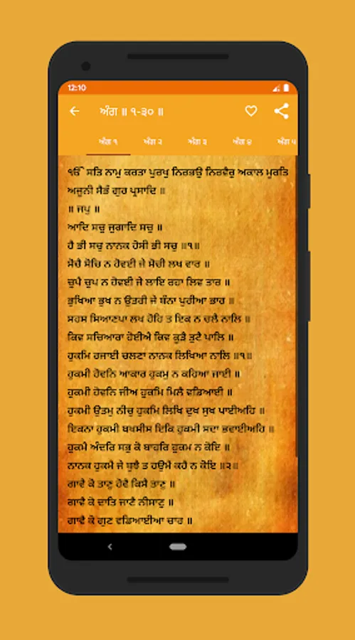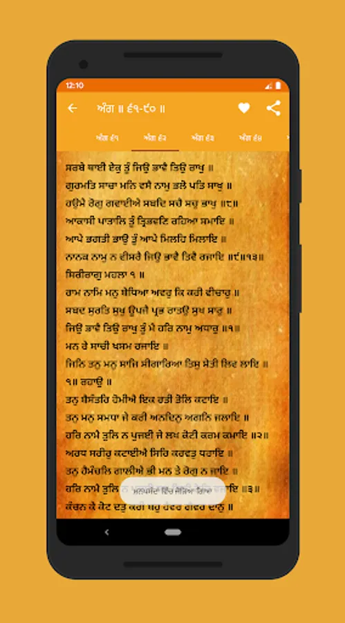 The text consists of 1430 angs (pages) and 6,000 śabads (line compositions), which are poetically rendered and set to a rhythmic ancient north Indian classical form of music. The bulk of the scripture is divided into thirty-one rāgas, with each Granth rāga subdivided according to length and author. The hymns in the scripture are arranged primarily by the rāgas in which they are read. The Guru Granth Sahib is written in the Gurmukhī script, in various languages, including Lahnda (Western Punjabi), Braj Bhasha, Khariboli, Sanskrit, Sindhi, and Persian. Copies in these languages often have the generic title of Sant Bhasha.