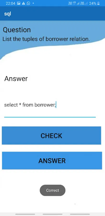 Basic SQL is an Android Mobile Application for the topic SQL of Database Engineering subject of Third Year of Computer Science and Engineering.