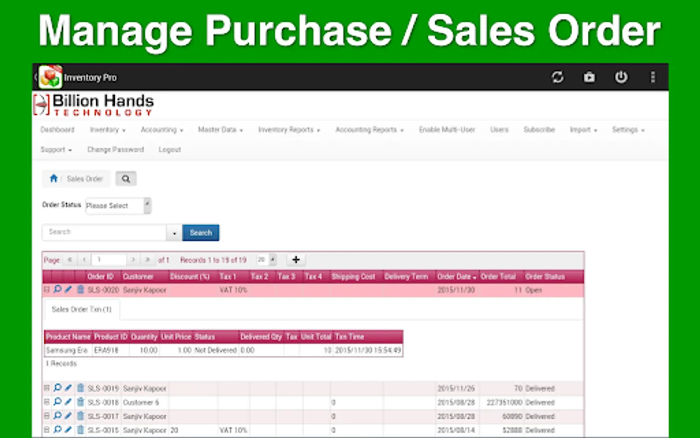 - Multi level taxes, item level tax & discount can be added to Purchase order and Sales Order.