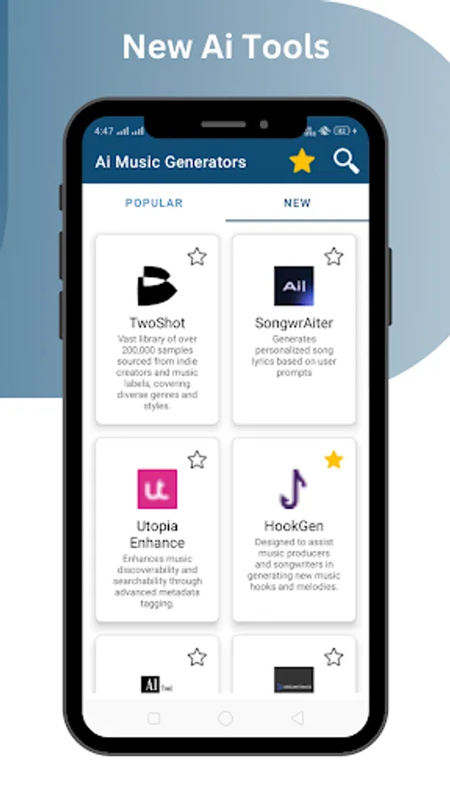 Our All in one AI tools app also allows you to use the tools directly within the app, making it convenient and easy to get started with. Ai Music Generators contain only free and Freemium AI tools. We add new AI tools on a regular basis.
