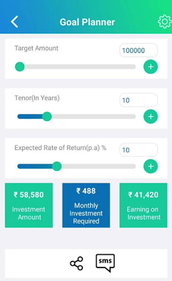 In this SIP Calculator, you can share your SIP Calculations with your friends as well.