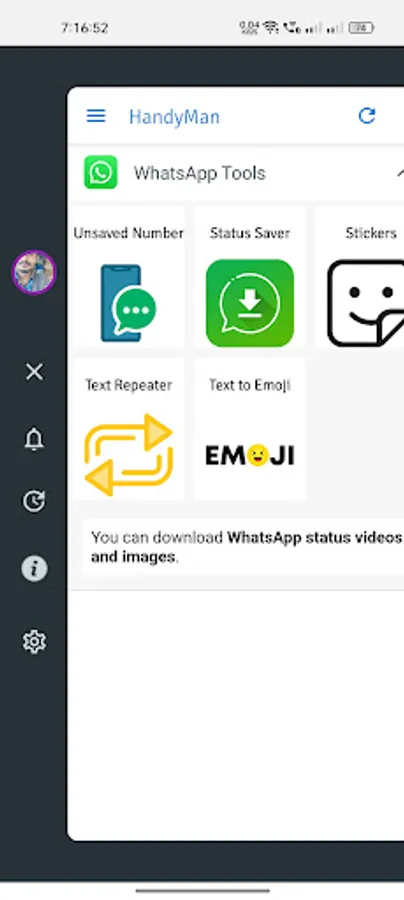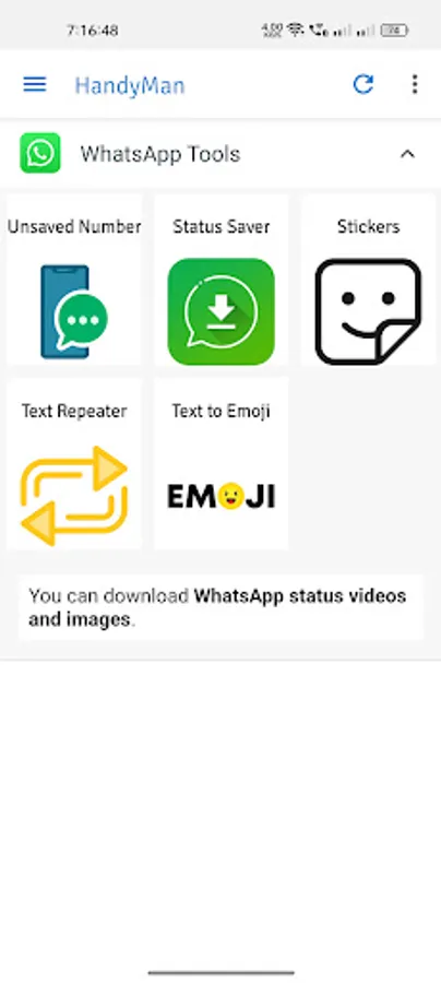 HandyMan provides continuously a lot of features like whatsapp status saver, whatsapp stickers, and more on.