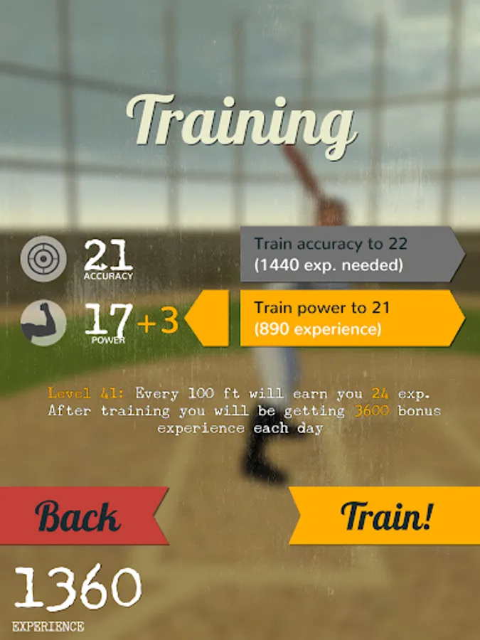 Smash the competition in the league by using the experience generated by playing games to level up your player stats. Upgrading the power and accuracy of your batter will let you score homerun after homerun on the baseball diamond. In addition to the ball hitting action you also earn free experience points by simply opening the game each day.