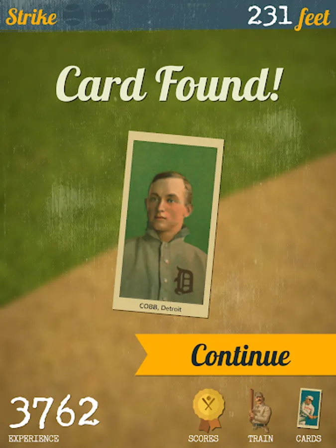 Try to land the ball close to red flag on the field - each time this gets you a new baseball card to build your vintage card collection. Gather rare baseball cards from the legendary T206 trading card set from the early 1900's, featuring MLB superstars like Ty Cobb. Finding batters with better batting average will improve your chances for smashing home runs. The base version of the game contains 50 baseball cards with more coming in future updates. Most cards are easy to collect by playing games, but some are harder to find. If you are lucky and you might even end up with the super-rare Honus Wagner card.