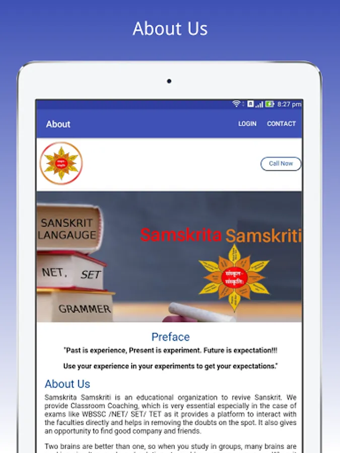 Samskrita Samskriti is an educational organization to revive Sanskrit. We provide Classroom Coaching, which is very essential especially in the case of exams like WBSSC /NET/ SET/ TET as it provides a platform to interact with the faculties directly and helps in removing the doubts on the spot. It also gives an opportunity to find good company and friends. Two brains are better than one, so when you study in groups, many brains are working simultaneously and solutions to problems comes very easy. When it comes to classroom coaching we are very flexible. The classes run throughout the week and Weekend Batches. We also provide Distance (1 Day / Month) & Postal Coaching.