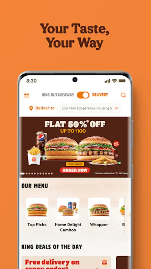 Wanna eat your Whopper at home in your pyjamas? The App’s got you covered with BK Delivery. Enjoy your freshly flame grilled Whopper brought to you at your doorstep through safe deliveries.