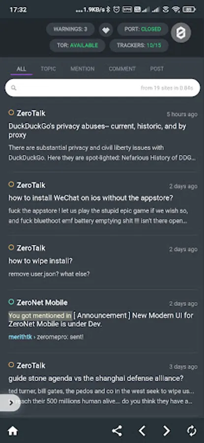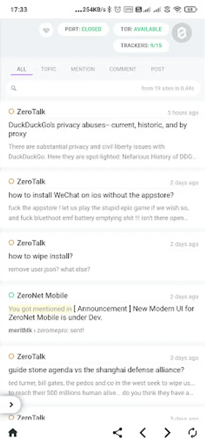 ZeroNet Mobile is an Android Client for ZeroNet, Project uses flutter framework for runner and is Open Sourced at https://github.com/ZeroNetX/zeronet_mobile, you can contribute to the app by forking the project.