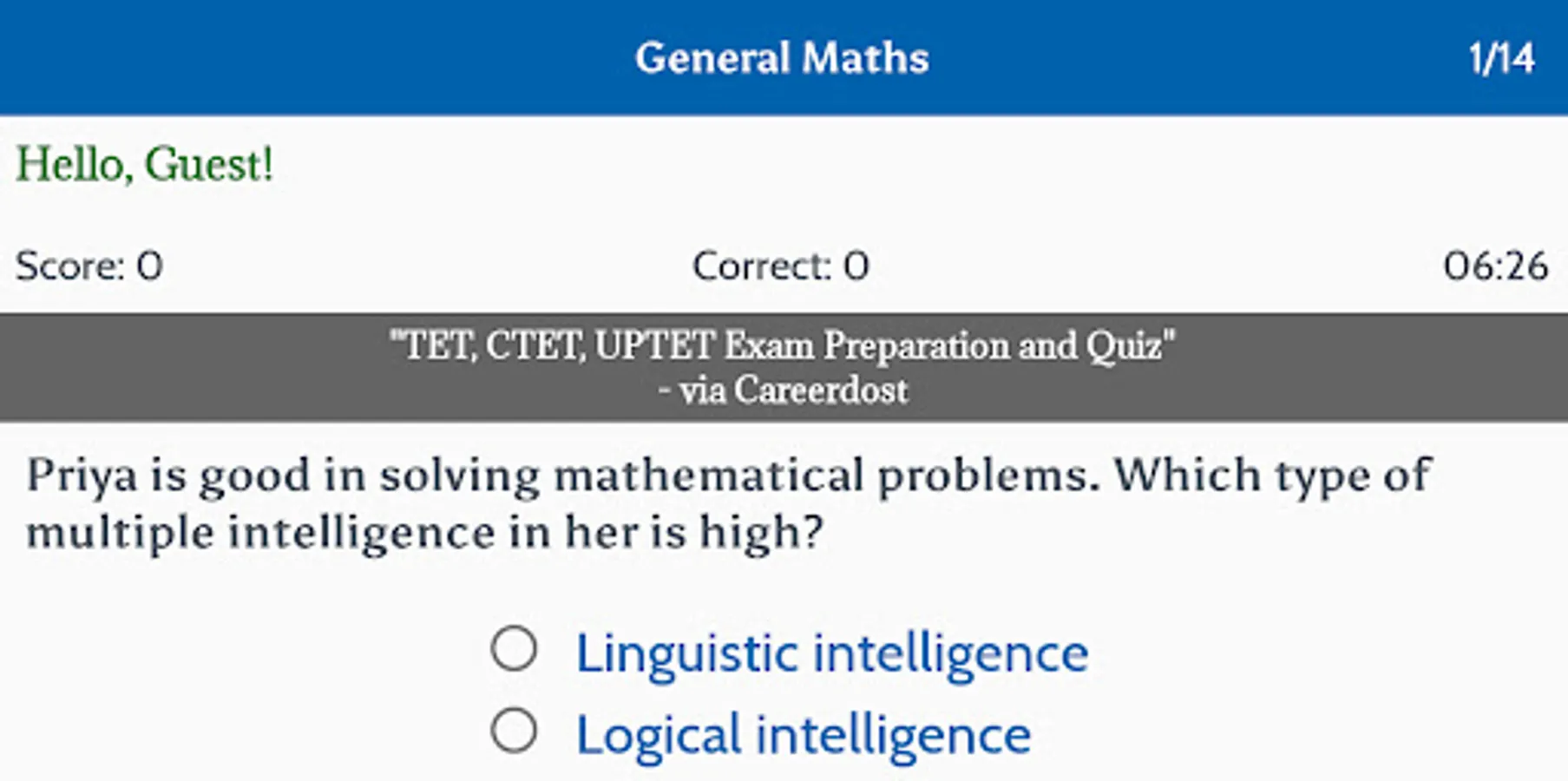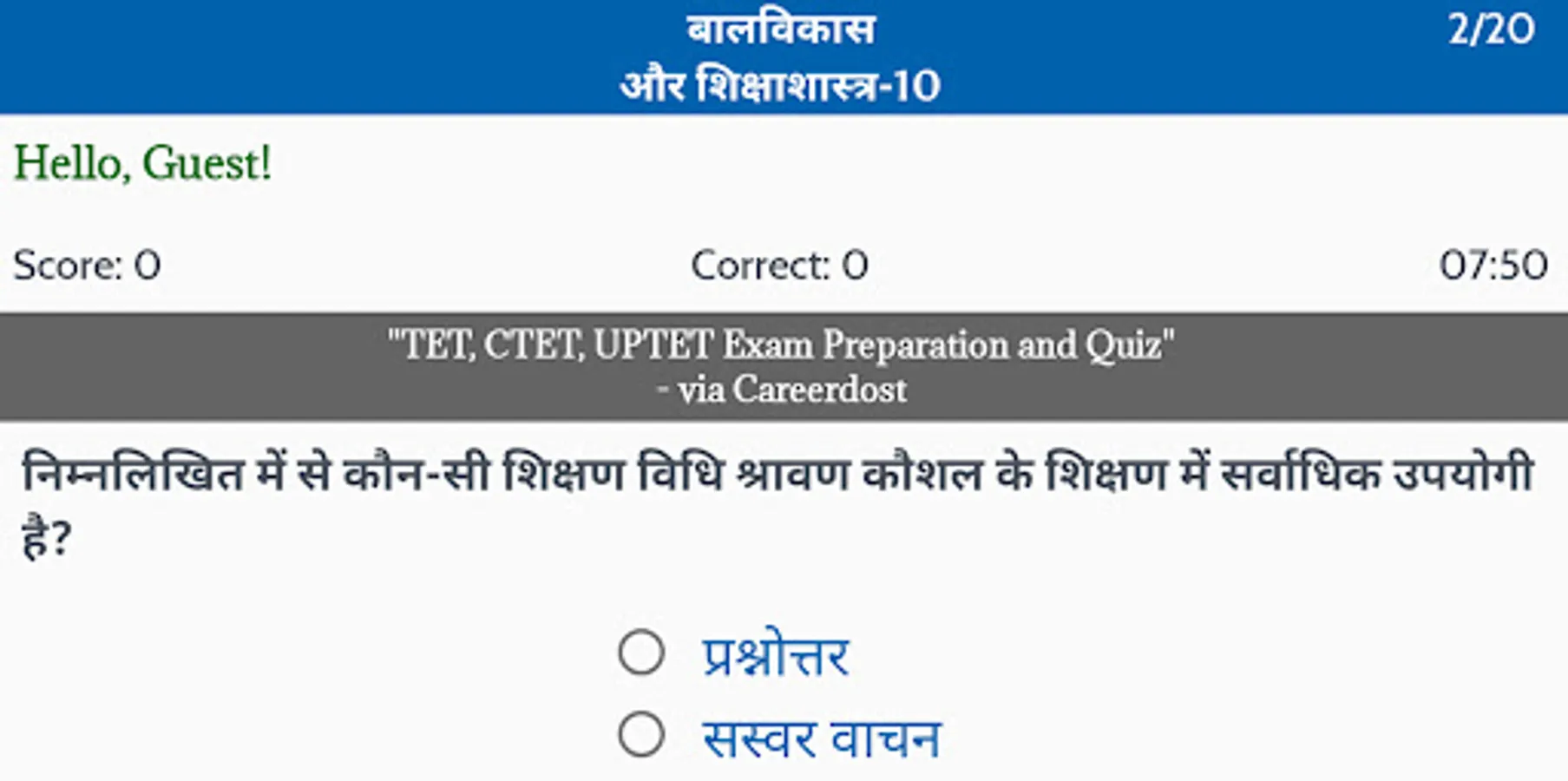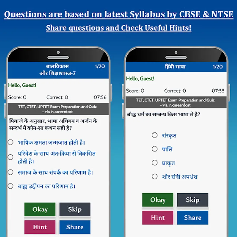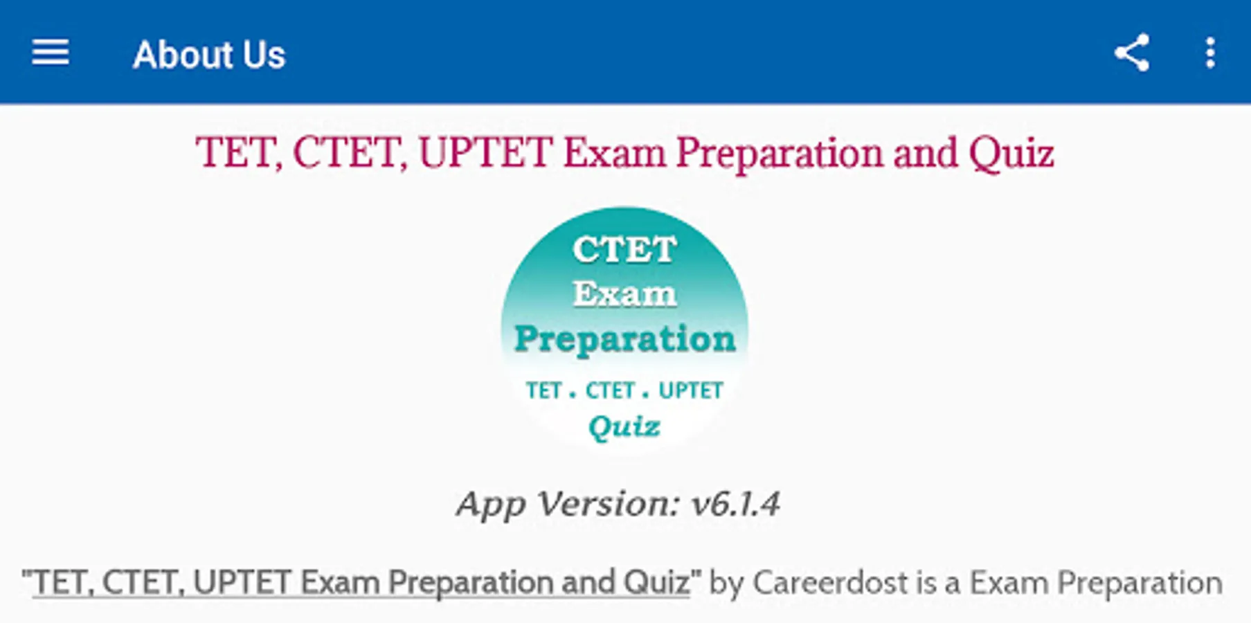 This app is an exam preparation test app for CTET, UPTET, SUPER TET, B.ed and teacher exam. The content of the app is based on the updated guidelines and syllabus from CBSE.