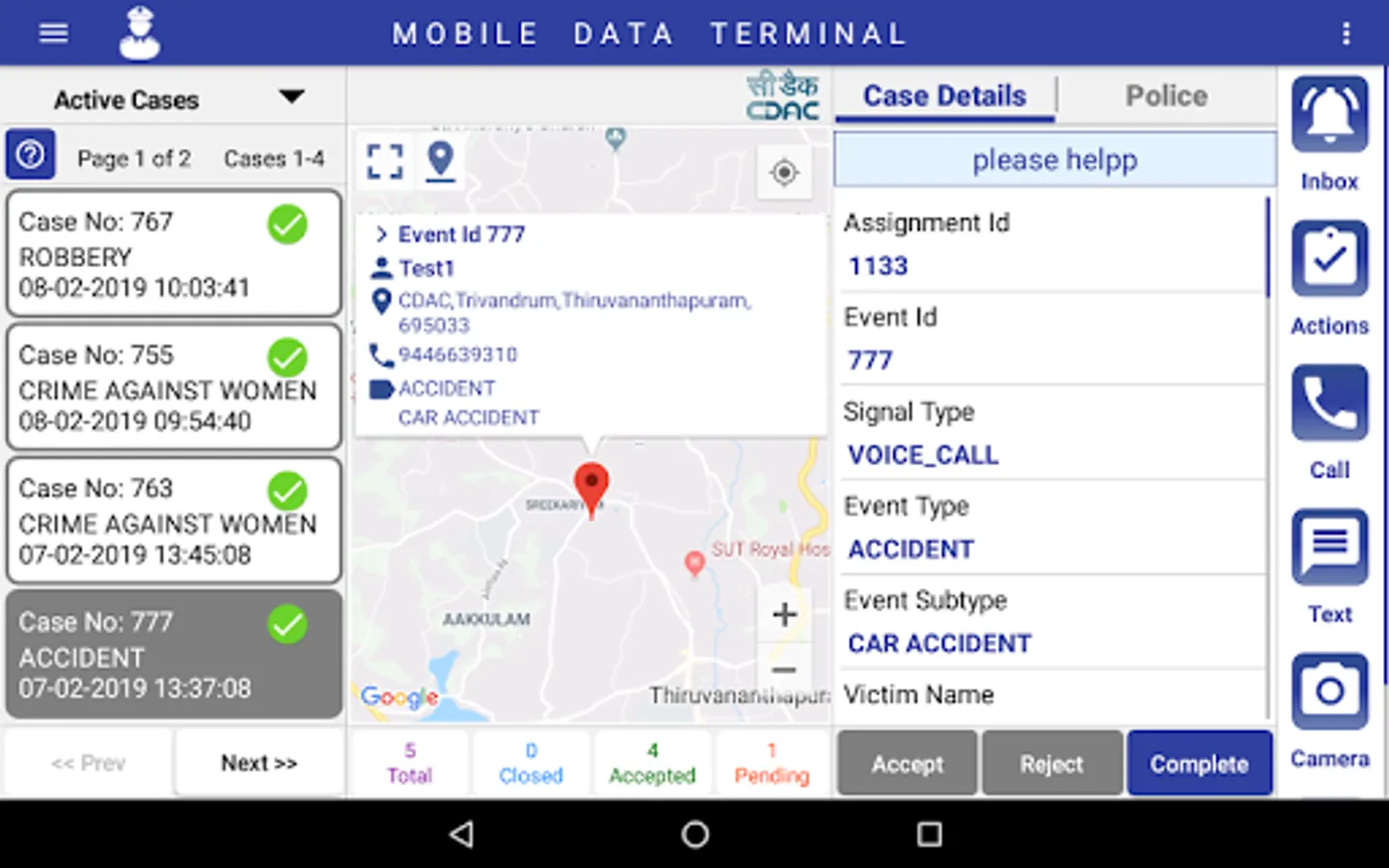 App used by emergency response units to communicate with emergency control rooms