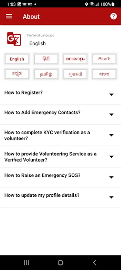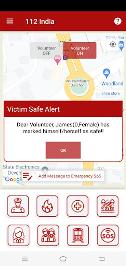 In an emergency situation, a person in distress may seek for the assistance of local emergency service delivery departments and volunteers through the App. The App will send emergency alerts with the user's details(name, age, emergency contacts) and location information, along with a generated call to ‘112’ - to the State Emergency Control Room and the person’s emergency contacts. The system forwards the emergency alert to nearby online local volunteers if available. The emergency alert is notified with an audible sound/ visual alert on the volunteer smartphones. The volunteers can mark their consent to help and the volunteer details along with photo and contact number will be forwarded to the person in distress.