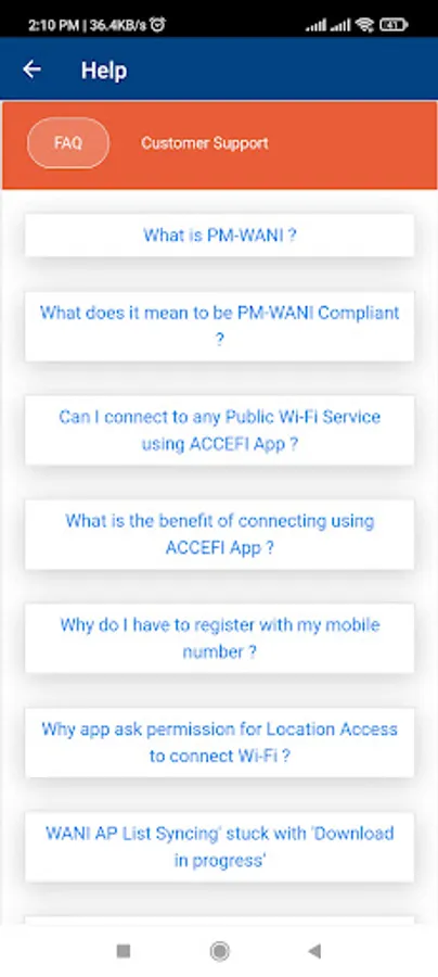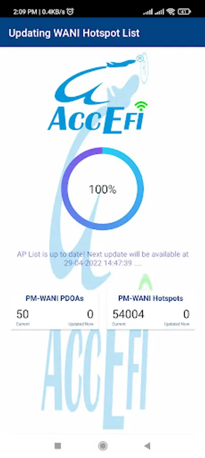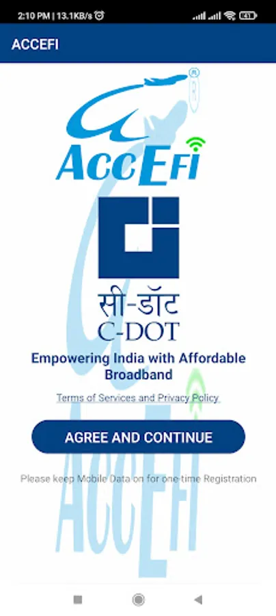 AcceFi compliant app is to discover and connect to PM-WANI compliant public WiFi hot spots.
