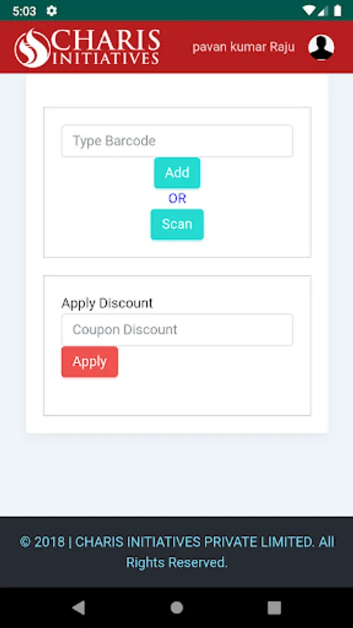 This app is a Point of Sale application for Charis Initiatives Private Limited.
