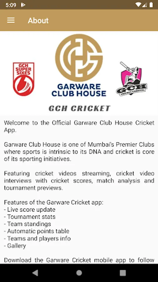Garware Club House is one of Mumbai's Premier Clubs where sports is intrinsic to its DNA and cricket is core of its sporting initiatives.