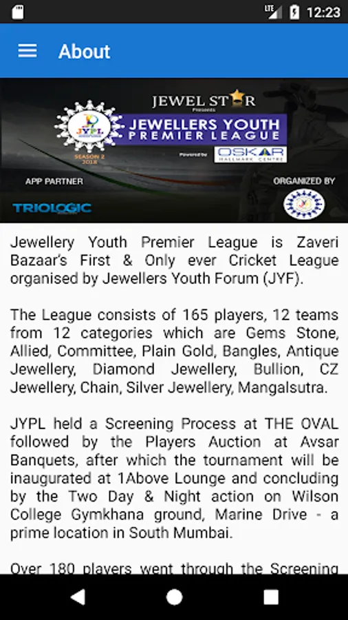 The League consists of 165 players, 12 teams from 12 categories which are Gems Stone, Allied, Committee, Plain Gold, Bangles, Antique Jewellery, Diamond Jewellery, Bullion, CZ Jewellery, Chain, Silver Jewellery, Mangalsutra.
