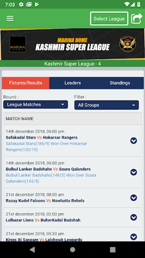 Features of the Kashmir Super League app:
