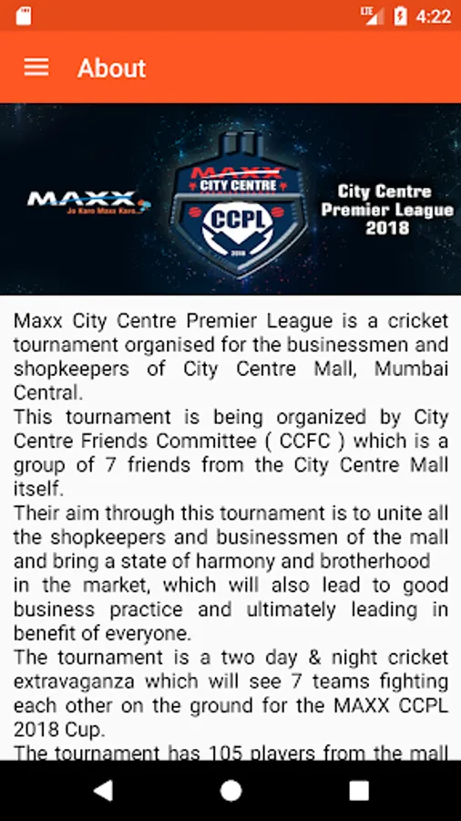 Maxx City Centre Premier League is a cricket tournament organised for the businessmen and shopkeepers of City Centre Mall, Mumbai Central.