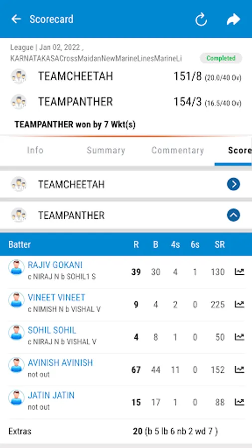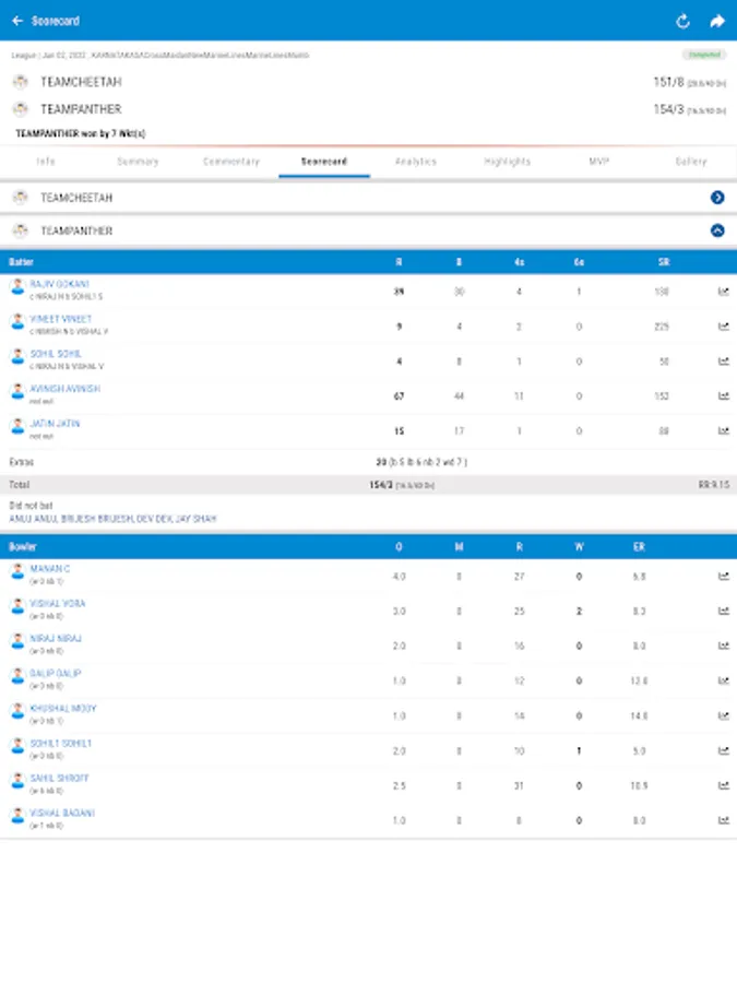 Follow along with cricket score updates of Jolly Friends Sports Club by downloading the app.