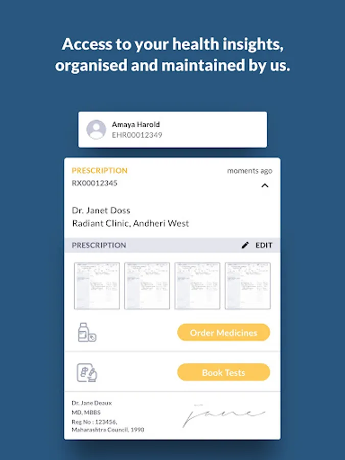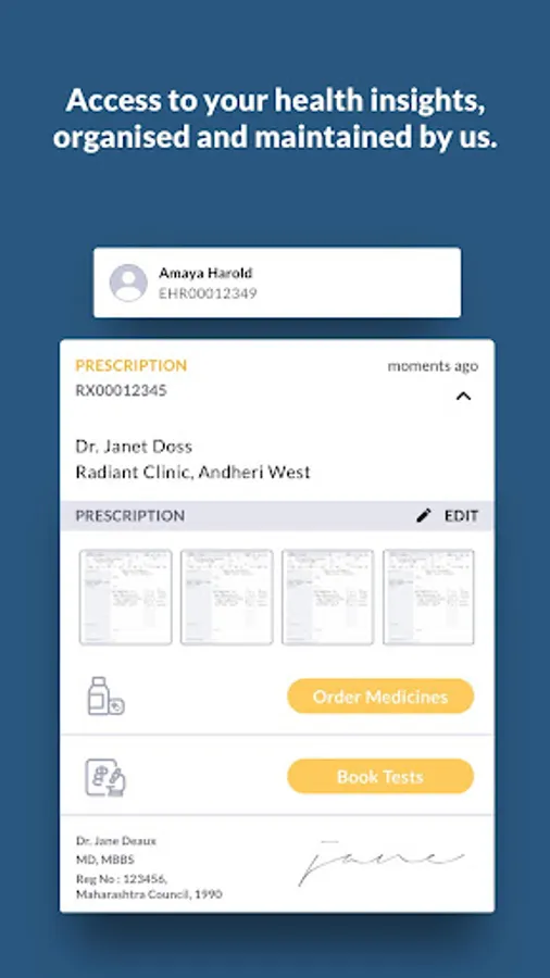 Access to Digital Prescriptions from doctors and Electronic Health Records on your phone instantly.