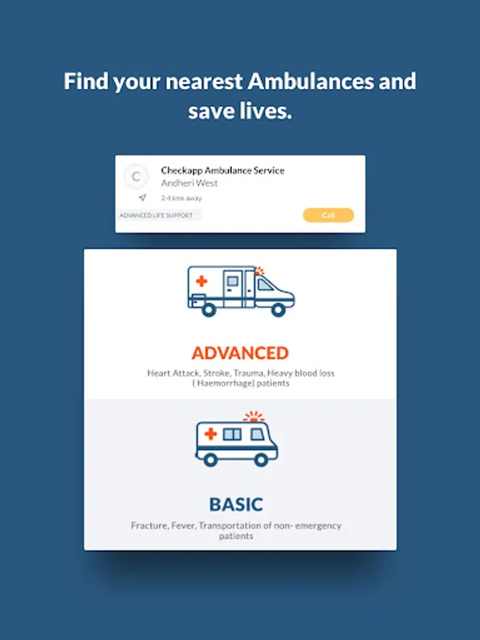 CheckApp connects Patients with Doctors, Pathology Labs, Diagnostic Imaging Centers, Ambulances.