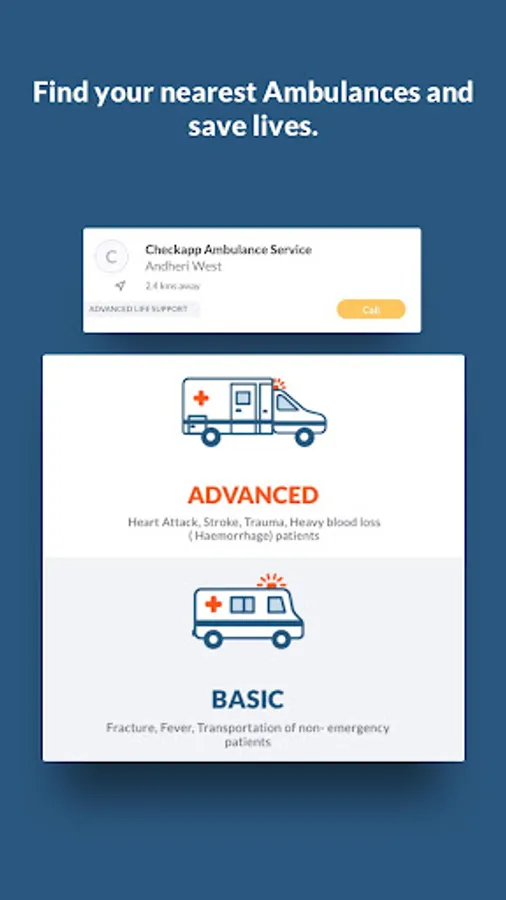 Search and call for nearest Ambulance during an emergency or for a planned transfers.