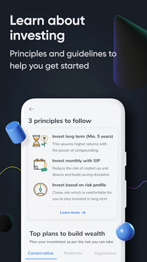 Invest in free direct mutual funds: With BLACK, you can invest in all kinds of mutual funds, such as large-cap funds, small-cap funds, ELSS funds, liquid funds, debt mutual funds, high-performance funds and balanced funds. You can even choose to invest either in lump-sum funds or via a systematic investment plan.
