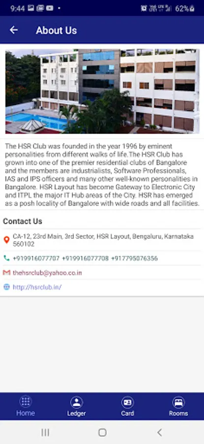The HSR Club was founded in the year 1996 by eminent personalities from different walks of life.The HSR Club has grown into one of the premier residential clubs of Bangalore and the members are industrialists, Software Professionals, IAS and IPS officers and many other well-known personalities in Bangalore. HSR Layout has become Gateway to Electronic City and ITPL the major IT Hub areas of the City. HSR has emerged as a posh locality of Bangalore with wide roads and all facilities.