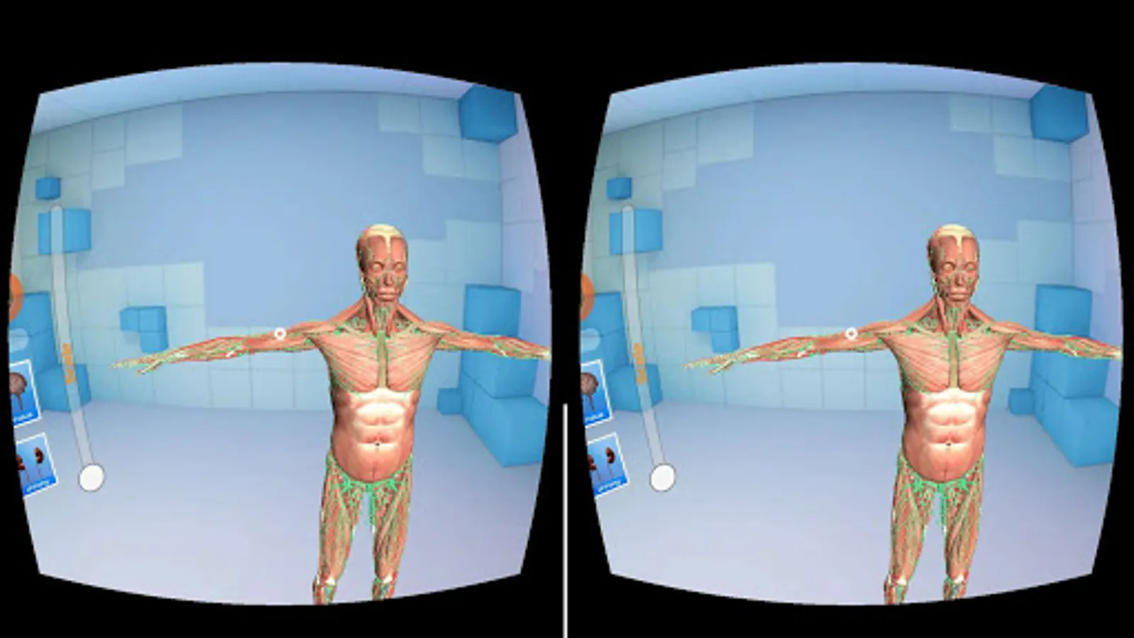 Walk around the Anatomy as if you walk around a physical character in front of you, lean, look up and down, up close, and interact with the internal Body parts.