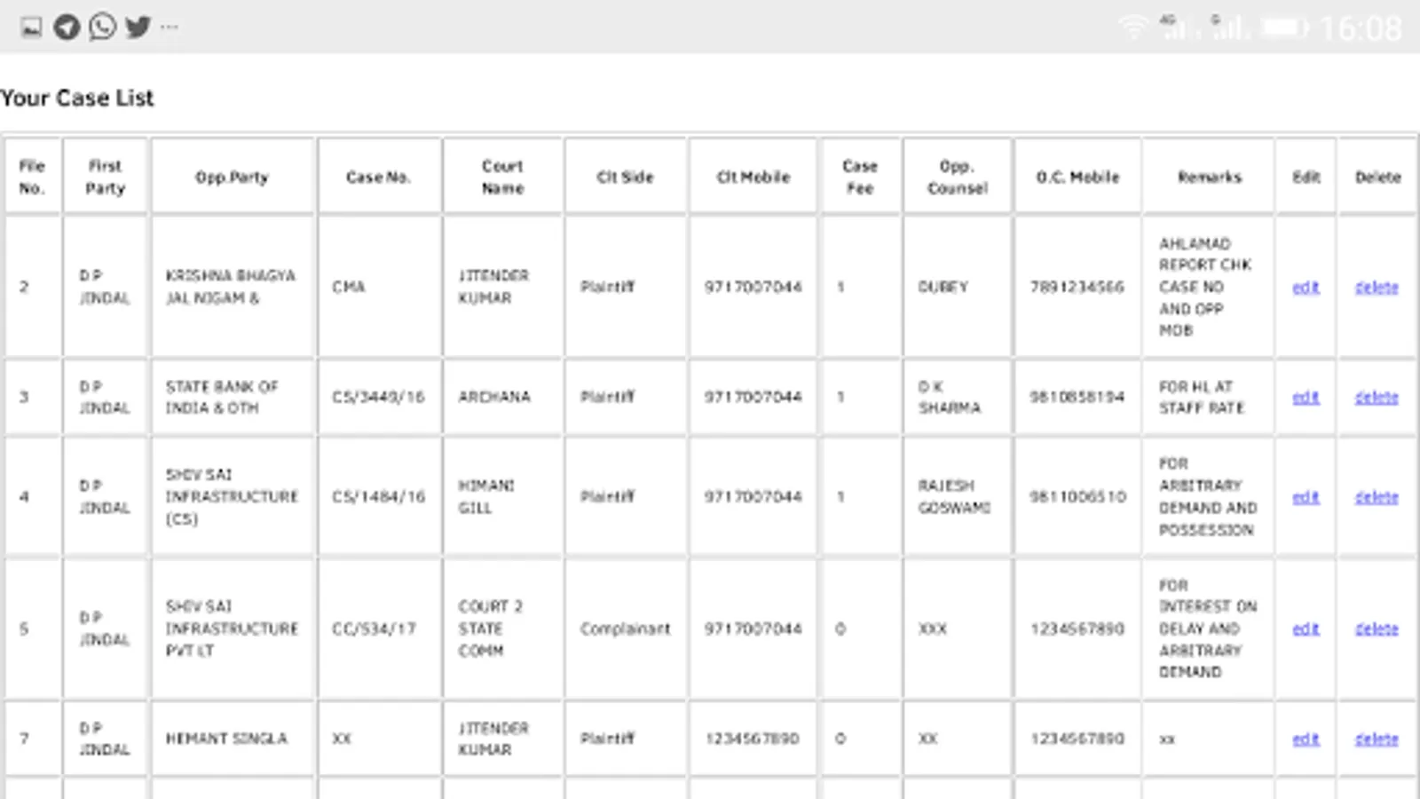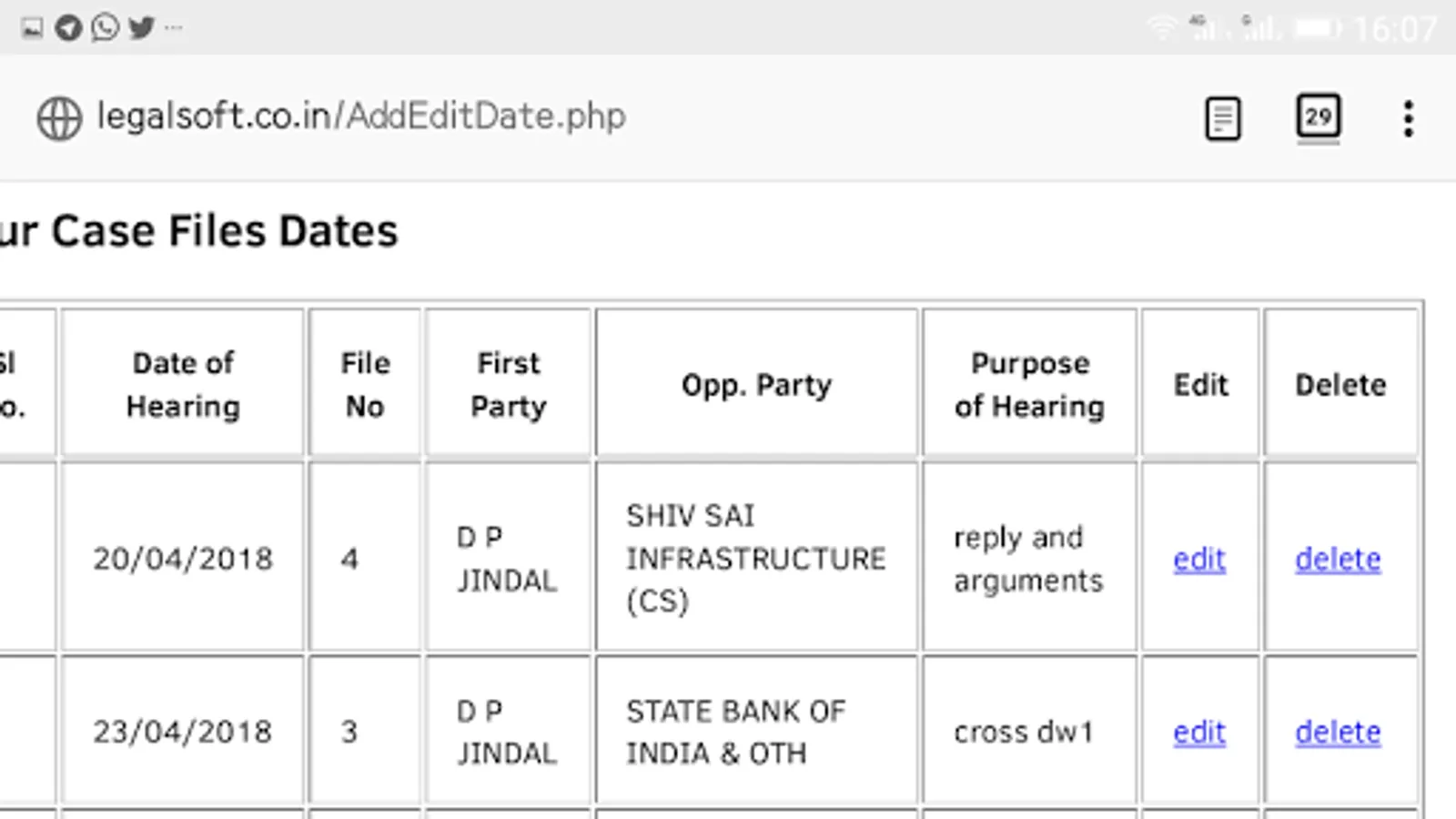 Advocates: - Maintain Daily Case Diary (Cause List) online with Fee Detail, Every Case Detail with Party Names, Contact Detail, Court Name, all case files and all dates of a case. Print the Daily Cause List