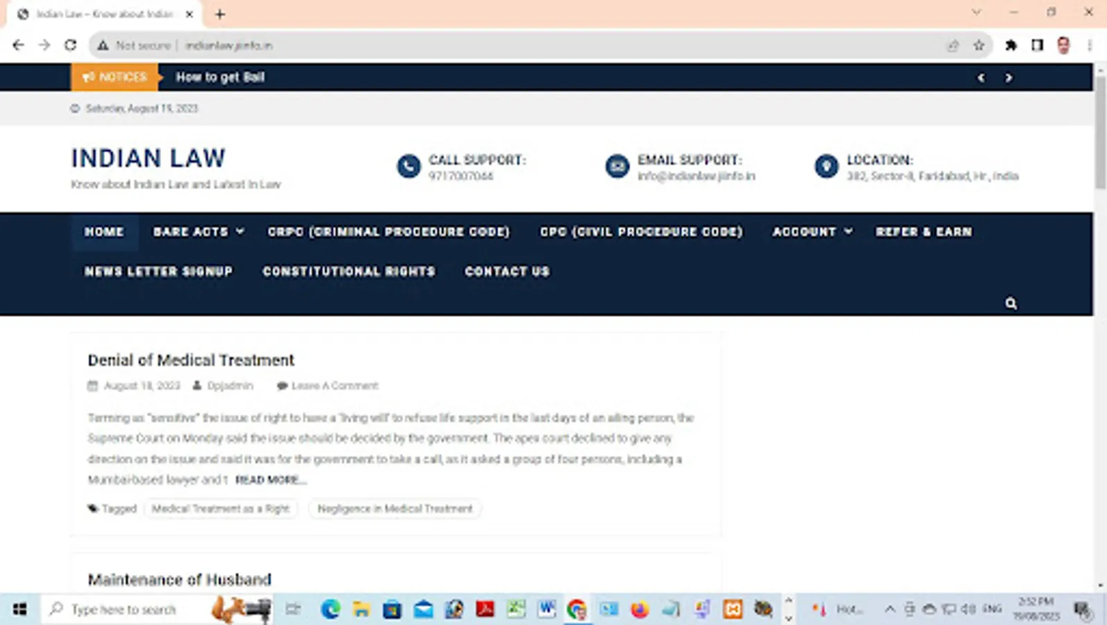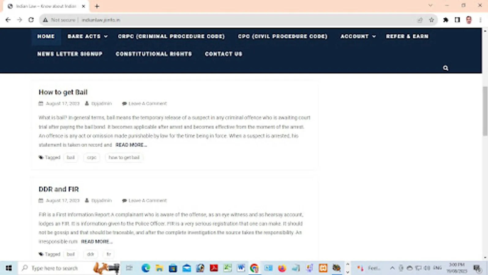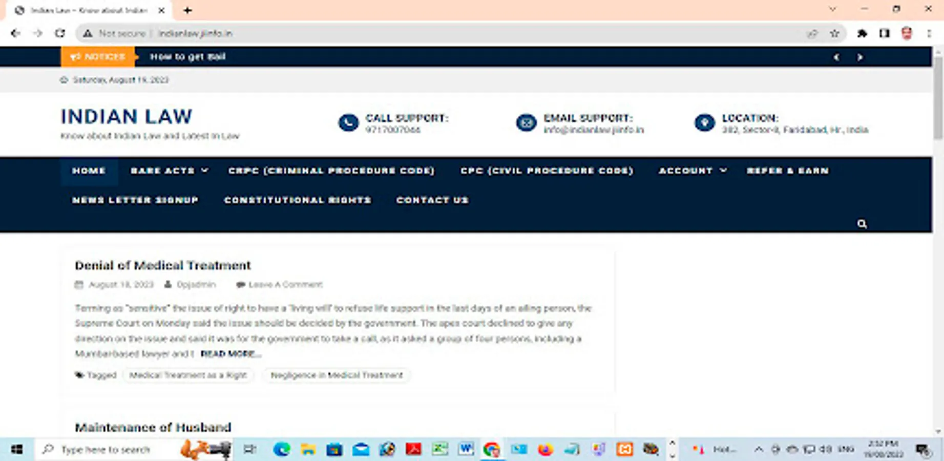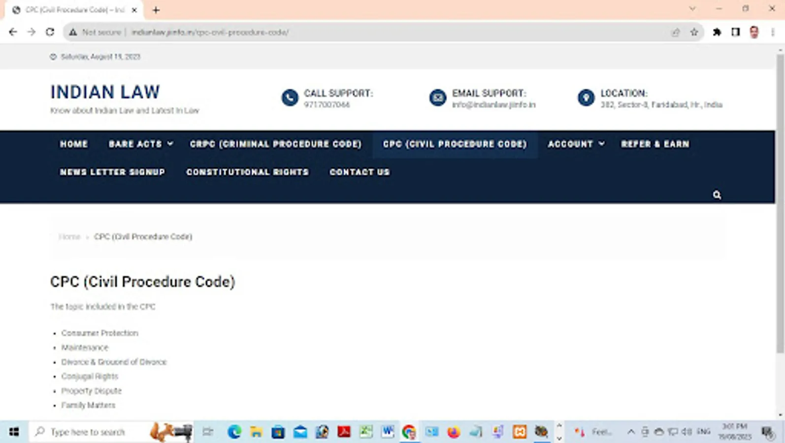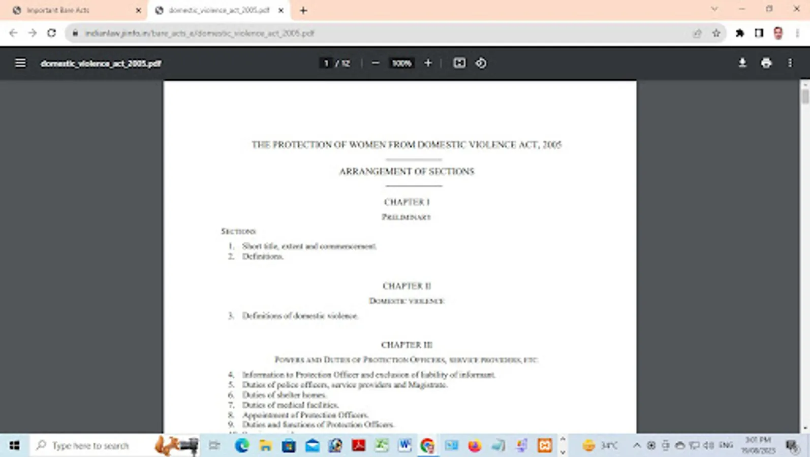 Indian Penal Code, Code of Criminal Procedure, Indian Evidence Act, Consumer Protection Act, Negotiable Instrument Act and Know your legal rights such as: Husband also can get maintenance, Grounds of Divorce, Cheque Dishonor-Criminal Offence, If molested or raped, If you are arrested, Your right of Bail, Right of Medical Treatment, FIR-DDR-NCR, Kinds of Offence-Cognizable and Non-Cognizable, Compoundable and Non-Compoundable Offence.