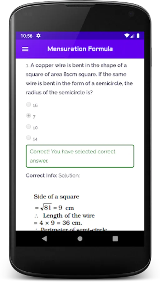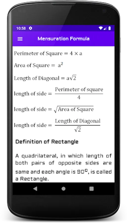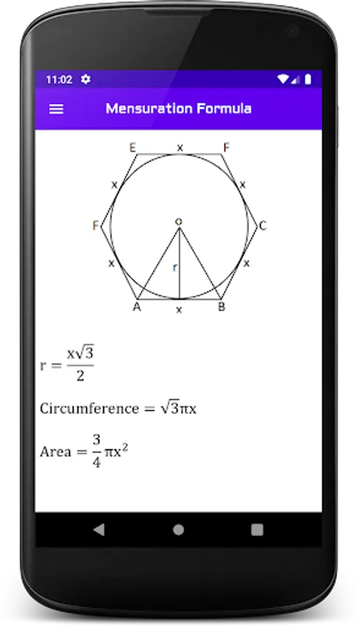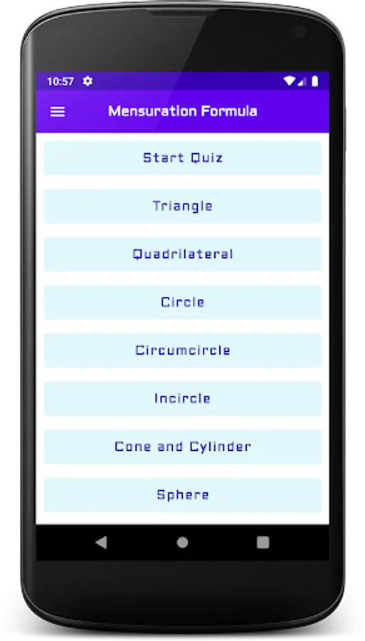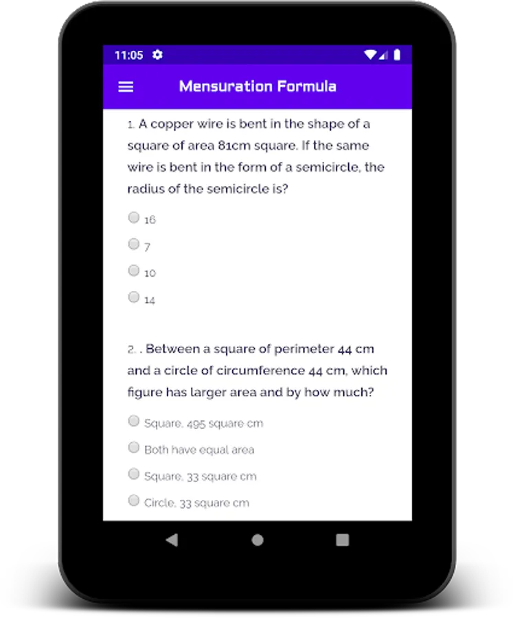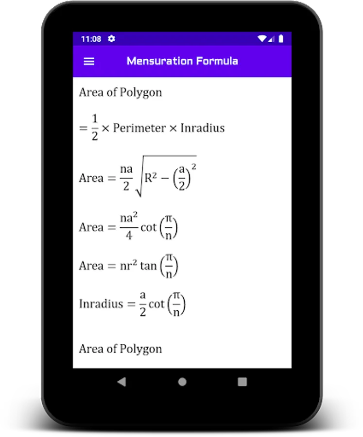 Mensuration Formula App is an Online App. This App contains more than 140 formulas to calculate Perimeter , Total surface Area, Lateral Surface Area, Circumference, Radius, Diameter and Volume of different Plane and Solid diagrams. This app contains formula of following Plane and Solid figures. Now a Quiz section has also been added.