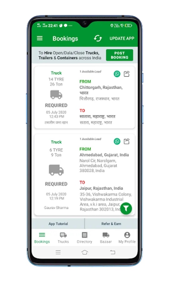 ◙ Find Booking and Loads Post Get Daily 500+ Loads & Bookings across India of Tempo, Trucks, Lorry, Trailers, Containers, Taxi, Cabs, and Buses, etc.