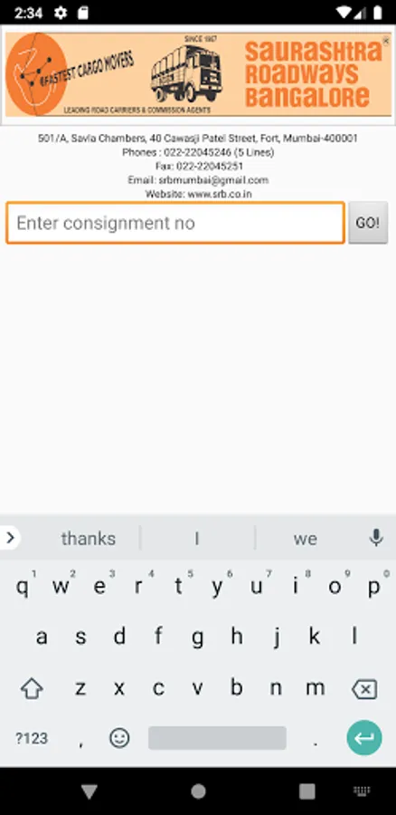 Consignment Tracking SRB Screenshots