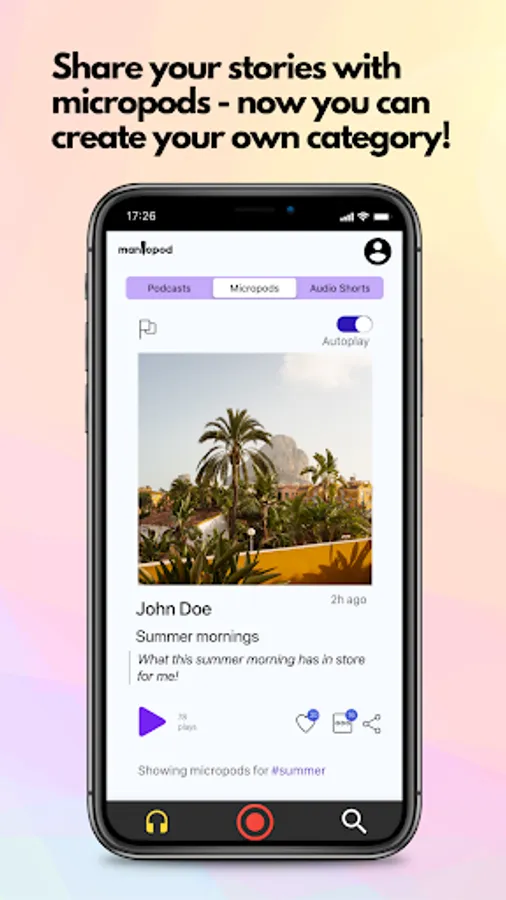 - Say it with micropods: micropods are short form podcasts where you can share quick thoughts, updates, stories or ideas - anything you like - with the world. No need for prol fessional set ups or mics, simply hit record on manicpod and create your own micropod! Like, share and comment on your favorite micropds.