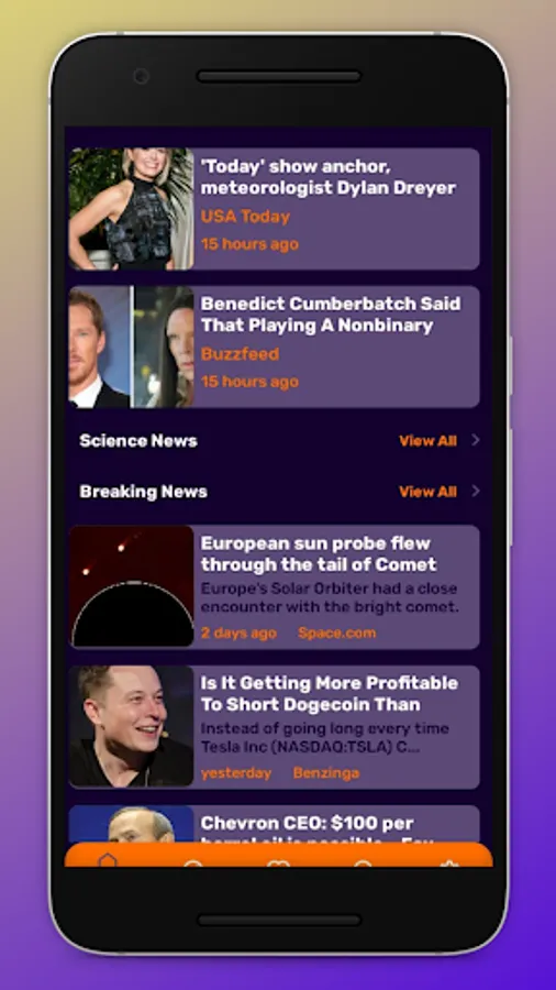 • The Headlines tab offers an unfiltered view of top and breaking news articles from around the world and India. Additional sections let you dig into more on tech news, business news, travel news, national and international news, health and more.