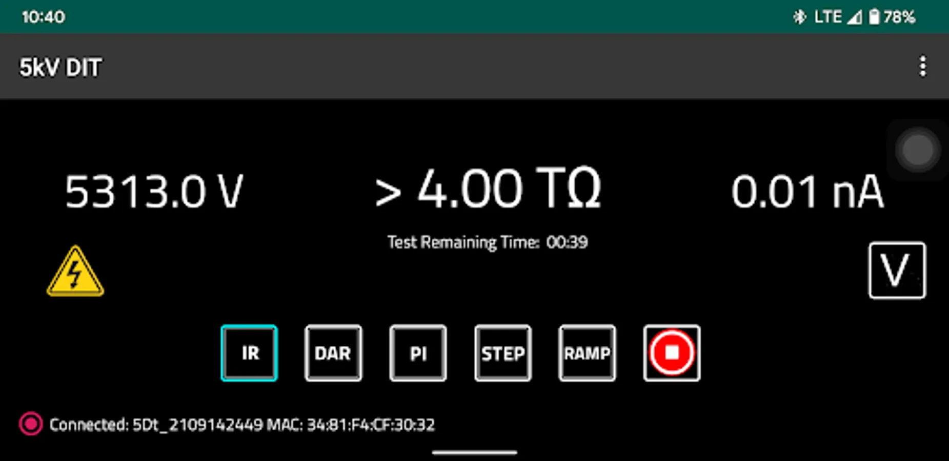 The INSU Connect application provides a bluetooth based virtual interface for all the Digital Insulation Tester models.