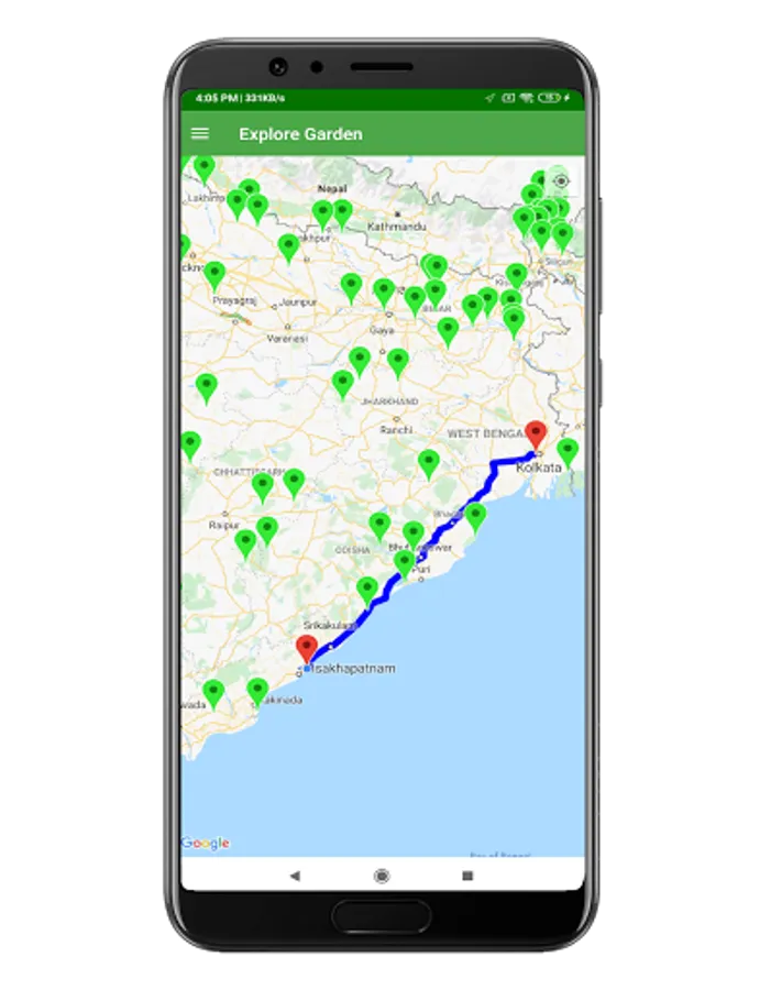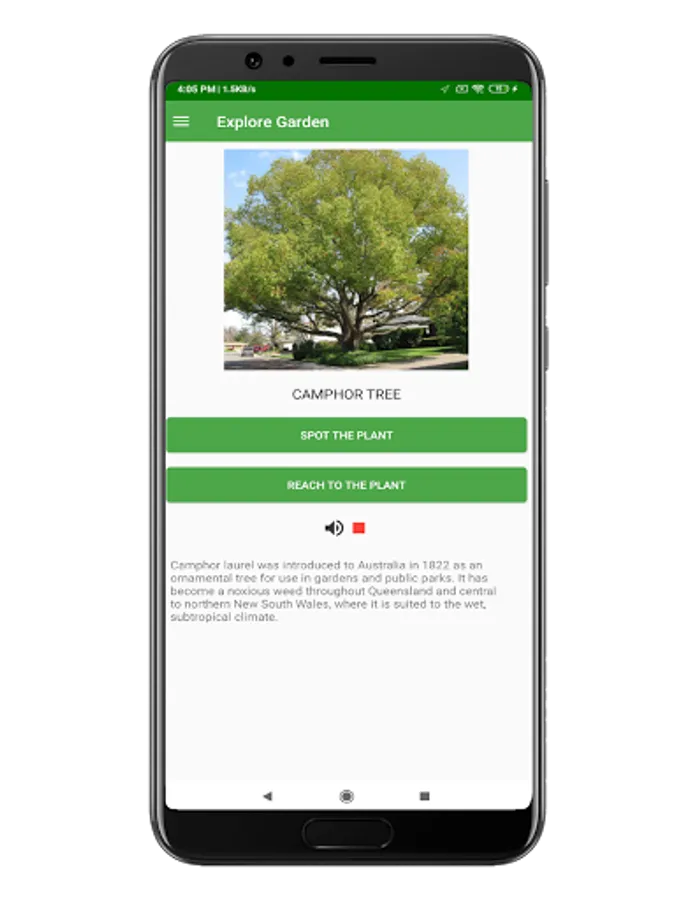 1) View current location and near by protected areas and botanical garden.