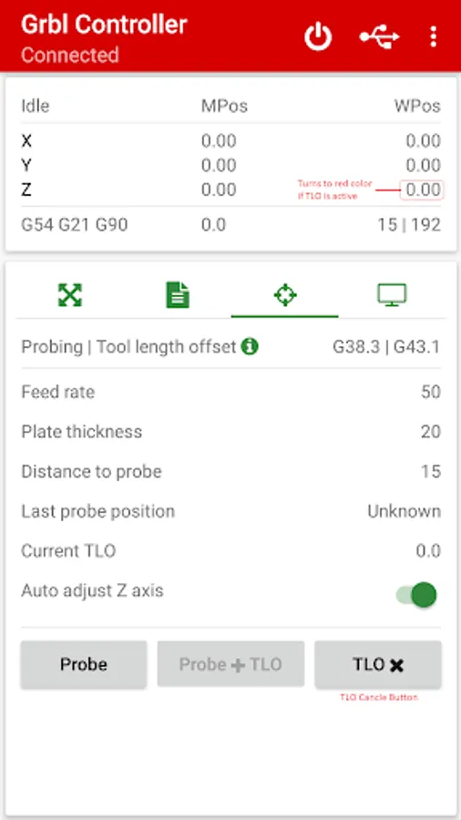 * Supports Probing (G38.3) and auto adjusts Z-Axis.