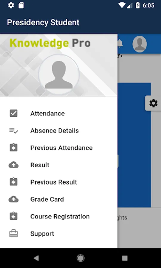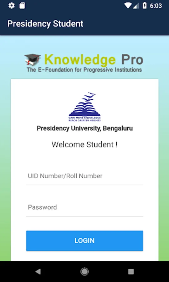 Presidency Students Can check their information's like Academic details, Attendance details, Grade card.