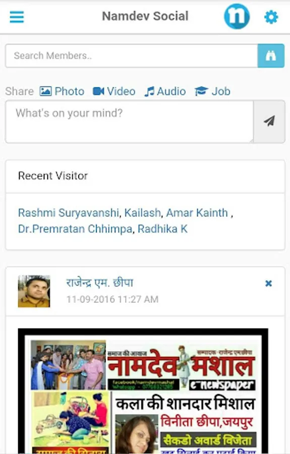 * Sharing of social idea, event, video or photographs to all samaj people.