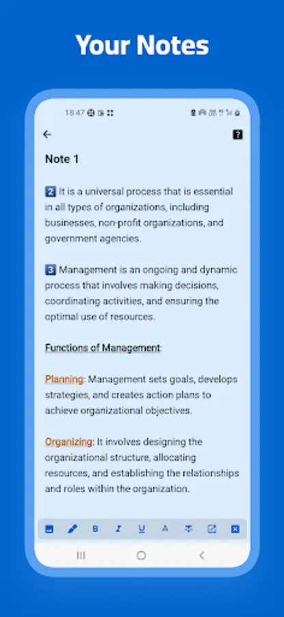2. Customizable notebooks: Personalize your notes with bold and colorful fonts, underlining, and highlights.