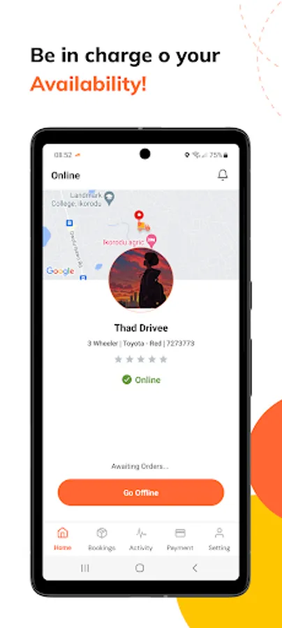 Performance Insights: Track your earnings, completed deliveries, and customer ratings. Gain insights into your performance to continually improve your service quality.